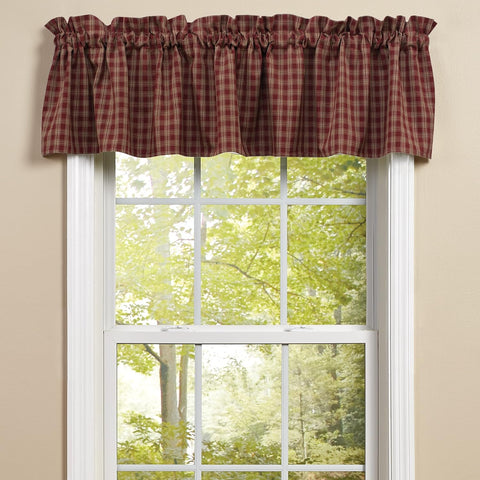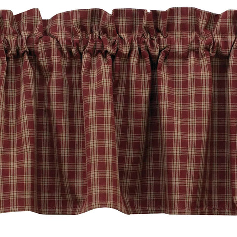 The Bridgeton Wine Valance features classic burgundy wine and tan plaid. The perfect blend of farmhouse elegance and country charm. Unlined.