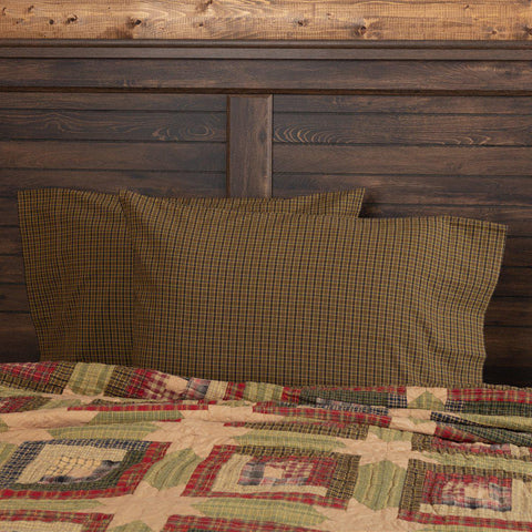 Dress your lodge bed with the Cabin Patch Green Plaid Pillow Case Set. Moss green, muted chartreuse, and navy accents make this pillow case set the perfect complement to your rustic bed.