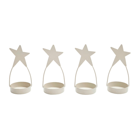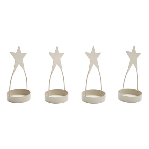 - Add a touch of rustic charm to your kitchen, dining table, or living room with our set of four Metal Star Tealight Holders in timeless antique white, blending seamlessly with primitive and rustic home decor styles.