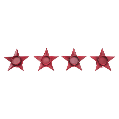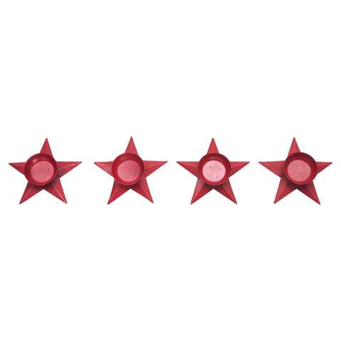 - Elevate your home decor with this set of 4 Metal Tealight Holders, featuring a charming star-shaped design in a rustic barn red color.