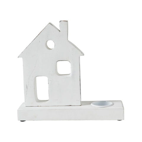 - Introduce a touch of quaint charm to your home decor with our Tropical Wood Tealight Holder featuring a delightful cutout Village House design, crafted from sturdy tropical wood.