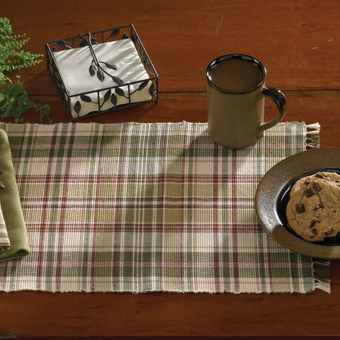 Set your country farmhouse table with our Caraway Placemat Set of 4. The placemat features textured sage green, barn red, and sand tan plaid. Set of 4.