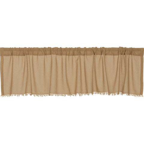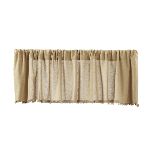 The Tobacco Cloth Khaki Valance Fringed 16x72 brings a luxuriously upscale farmhouse look to your home or retreat. A lightweight dark tan tobacco cloth drapes your window in sheer elegance with its soft and simple texture.