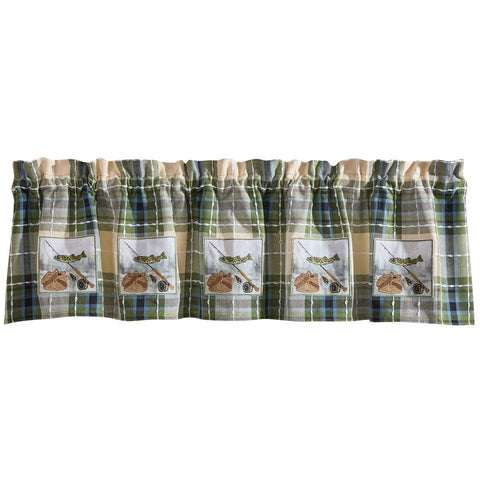 Add a touch of lodge cabin style to your window with the Troutman Lined Valance. Displaying an outdoor design with fishing graphics that will add charmto your home . Curtains include rod pocket for easy hanging.
