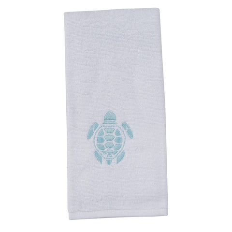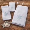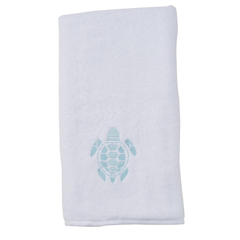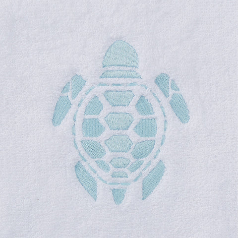 Our embroidered Turtle Terry Towels add a touch of elegance to your farmhouse coastal bath! White cotton terry towel with light blue turtle embroidery.