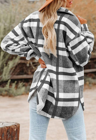 Vintage Flannel Lapel Button Shirt Jacket - Black