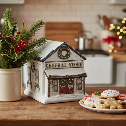 Store and keep your Christmas cookies fresh in vintage country style with our Santa's House Cookie Jar. Sturdy construction made of ceramic.