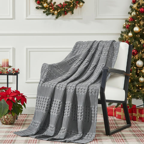 - Farmhouse & Cottage Core Essence — This timeless cotton throw, with its rich dark gray hue and intricate waffle weave, effortlessly blends rustic charm with sophisticated comfort, transforming your home into a serene farmhouse or cottage-inspired sanctuary.
