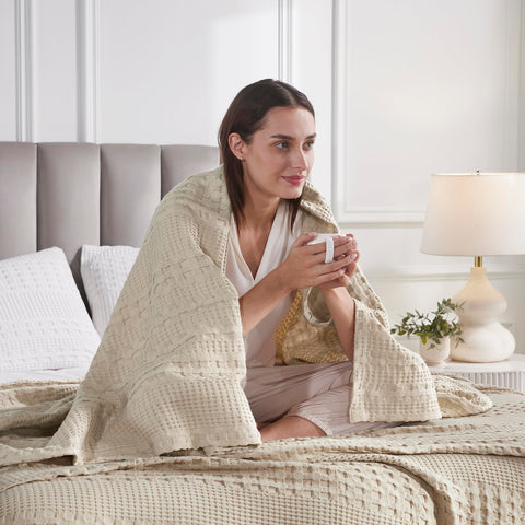 - Farmhouse & Cottage Core Essence — This throw's natural hue and intricate waffle weave effortlessly blend with sun-drenched fields and cozy cottage interiors, creating a tranquil retreat brimming with rustic charm and elegant comfort.
