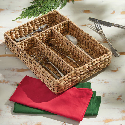 Organize your flatware and utensils with our Water Hyacinth Cutlery Basket Tray. Featuring 4 slots and sturdy water hyacinth, it's a stylish functional addition for your kitchen.