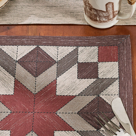 Bring rustic charm to your table with the Weathered Barnboard Block Placemat Set of 4. Featuring a farmhouse-inspired quilt block design, this placemat adds warmth and character to every meal. Its durable construction protects surfaces while enhancing your country-style décor, making it perfect for everyday use or special gatherings. Elevate your dining experience with a touch of timeless farmhouse elegance.
