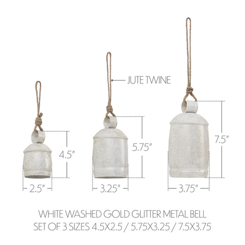 White Washed Gold Glitter Metal Bell Set of 3 – Lange General Store