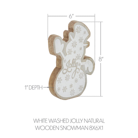 Add festive cheer to your holiday decor with the Washed Jolly Wooden Snowman. Measuring 6x8 inches, this charming figurine features a classic cookie-cutout snowman finished in a soft whitewash with light tan accents. Relief-cut snowflakes and the word "Jolly" written across the middle add delightful holiday details, while the distressed high spots create a vintage, weathered look that stands out beautifully against the white background. Crafted from durable tropical wood, this snowman brings handcrafted rustic charm to your seasonal displays. Its solid color palette and textured design make it a perfect addition to farmhouse, primitive, or traditional Christmas themes. Whether displayed on mantels, shelves, or tabletops, it adds warmth and character to your holiday arrangements. Perfect for use in any room-bathroom, bedroom, dining room, entryway, kitchen, or living room-the Washed Jolly Wooden Snowman brings joyful spirit and cozy elegance to your home. Easy to maintain, simply wipe clean with a soft cloth to preserve its timeless appeal year after year. This festive piece is a delightful addition to your Christmas collection, embodying the cheerful spirit of the season.
