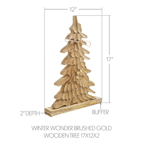 Bring a touch of timeless elegance to your seasonal decor with the Winter Wonder Brushed Wooden Tree. This decorative figurine features a beautifully sculpted layered design, resembling natural pine boughs in a gentle, sweeping form. Crafted from tropical wood and finished in a warm light wood tan with hints of brushed gold, it offers a subtle shimmer that catches the light and adds festive charm. The tree is affixed to a sturdy wooden base for stability and accented with a twine tie and small wooden beads, enhancing its handcrafted, country-inspired appeal. The combination of rustic texture and soft golden highlights gives it a vintage look, making it a standout piece in farmhouse, cottage, or traditional winter themes. Whether displayed on a mantel, tabletop, or entryway console, it adds graceful height and dimension to your holiday arrangement. Perfect for any room-bathroom, bedroom, dining room, entryway, kitchen, or living room-the Winter Wonder Brushed Wooden Tree brings warmth and character to your winter decor. Durable and easy to maintain, simply wipe clean with a soft cloth to preserve its beauty season after season. This charming piece is a versatile and elegant addition to your festive collection.