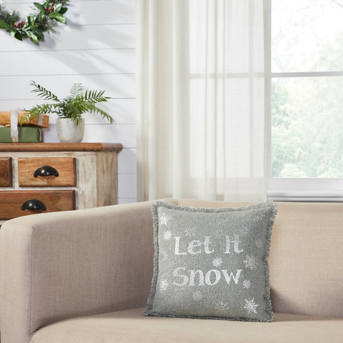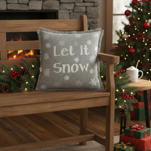 Yuletide Burlap Dove Grey Snowflake Let It Snow Pillow